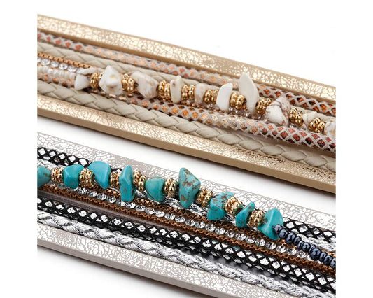 Fesciory Leder-Wickelarmbänder für Damen, Boho-Leoparden-Armband mit mehrschichtigen Kristallperlen, Manschettenarmband, Schmuck