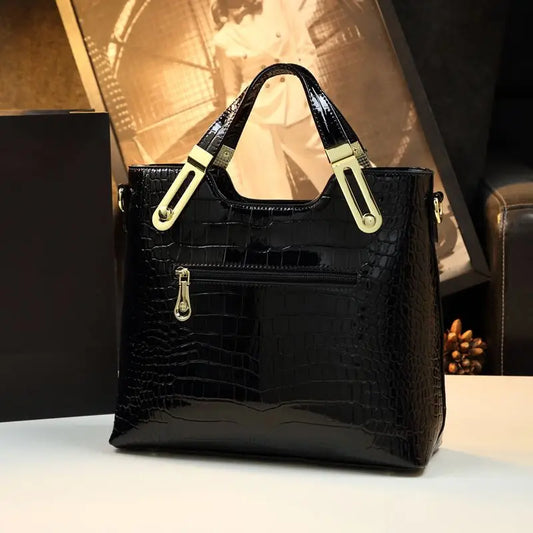 Crocodile Pattern Handbag, Women Large Capacity Crossbody Bag, Fashion Glossy Satchel Purse