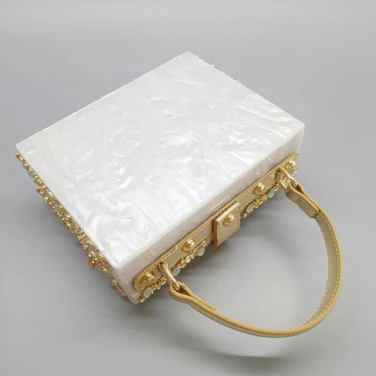 Box Designer evening bag diamond flower Clutch Bag hollow relief Acrylic luxury handbag banquet party purse women's Shoulder bag