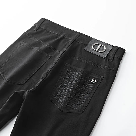 2024 neue HERREN-Jeans, leichte Luxus-Slim-Fit-Jeans mit geradem Bein, elastisch, modisch, lässig, Baumwollwäsche, schwarz, vielseitig, bequemer Denim