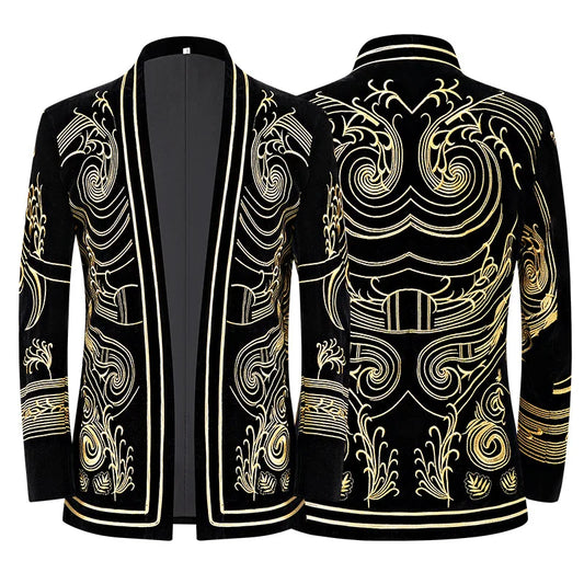 Fashion Brand Men Luxury Embroidered Suits Velvet 2piece European Gentleman Wedding Party Cardigan Style Blazers and Pants