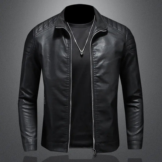 Schlanke Streetwear-Motorradjacke aus PU-Leder für Herren
