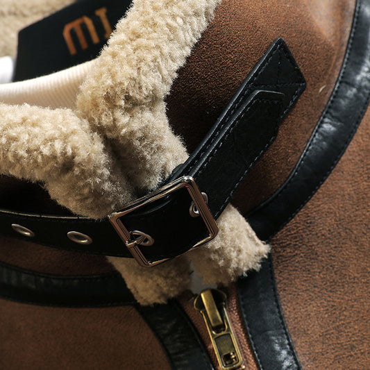 Jacke aus dickem Wildlederstoff mit Lammwollfleece-Futter