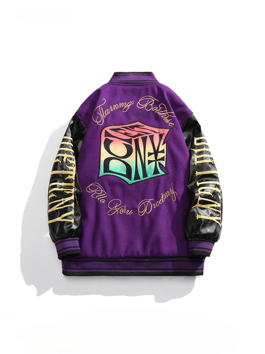 Herren Bomberjacke Hip Hop Brief Beflockung Stickerei Lose Beiläufige Baseball Mantel Unisex High Street Lose Retro Outwear Frühling