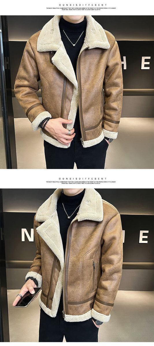 Motorradjacke mit integriertem Pelz Herrenjacke aus dickem Leder mit Fleecefutter