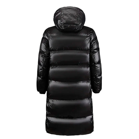 Herren Winter Daunenjacke mit Kapuze High-End Schwarz Gold glänzend Ultraleichter weißer Entendaunenmantel Mode Langes Paar Warm Gefütterter Mantel