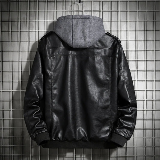 Mit Kapuze Lederjacke Herrenjacke Winter PU Ledermantel Teenagerjacken Herren Motorrad Ledermantel Harajuku