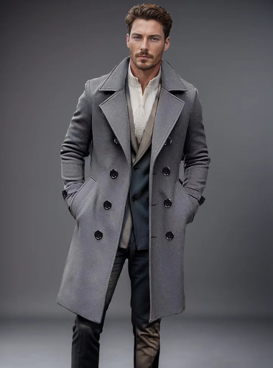 Herbst und Winter Herren Wollmantel lässig und modisch zweireihig langer Herren Wollmantel