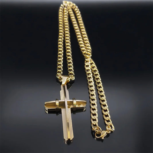 HNSP 316L Stainless Steel 3D Cross Chain Necklace Pendant For Men Jewelry Accessories Gold Silver Color