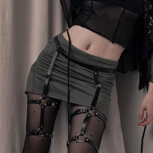PU Leather Body Harness Set Leg Harness Gothic Suspenders ForWomen Y2K Fetish Lingerie Thigh Garter Erotic Accessories