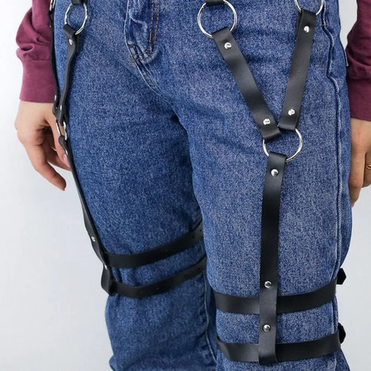Women Sexy Body Harness Belt Bondage Lingerie Garter Belt Leather Lingerie Leg Harness Punk Gothic Fetish Clothing