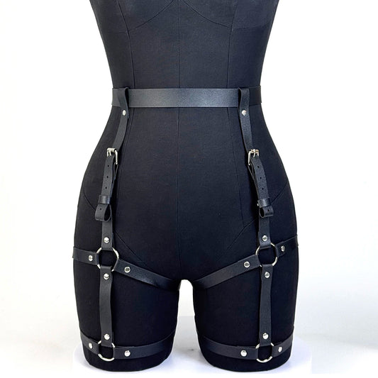 Women Fashionable Harness Waist belt Set Leather Harness Waist Belt Body Harness Breast Leg Garter Belt Goth Clothing Accessoly