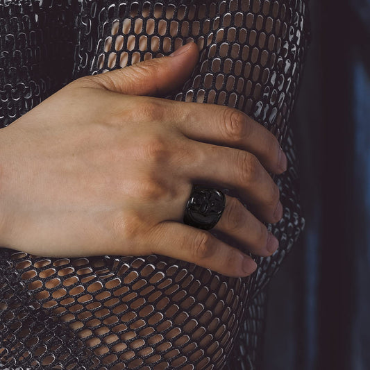 Bandmax Schwarzer Totenkopfring für Männer, Größe 12, Edelstahl, klobige Biker-Totenkopfringe, Flammen-Totenkopfringe, lodernder Totenkopfreiterring, Punk-Schmuck