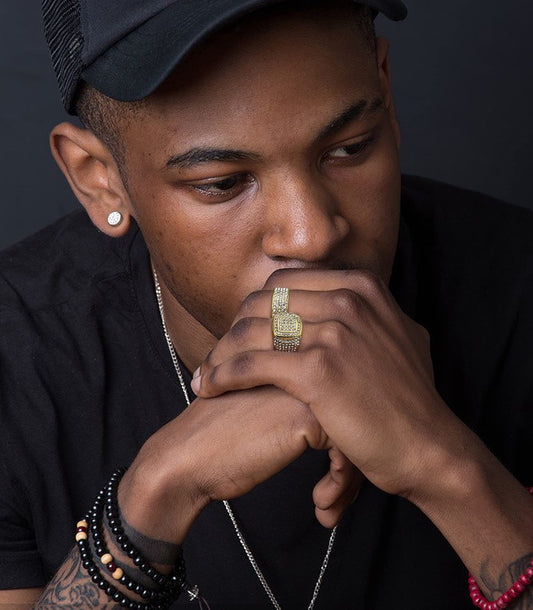 Fanshu Edelstahl Titan Luxus AAA Zirkon mit 18K vergoldet Iced Out Hip Hop Boss Ring für Männer Frauen Freund Geburtstagsparty Geschenk Modeschmuck (11)