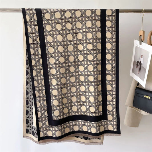Neuer Winterschal mit zweifarbigem Muster, geteilter Schal für Frauen, warm und modisch, warm und bequem, luxuriöser Designerschal für Frauen