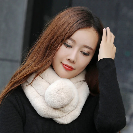 Neu Kaninchen Fell Schal Frauen Winter Warme Weiche Pelzigen Schals Casual Weibliche Dame Außen Hals Wärmer