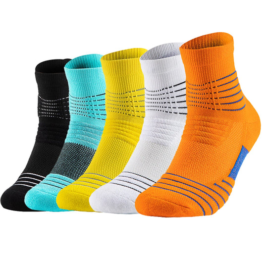 5 Pairs Man Sport Socks Professional Nylon Compression Sweat-Absorbing Quick-Drying Non-Slip Fitness Marathon Ankle Crew Socks
