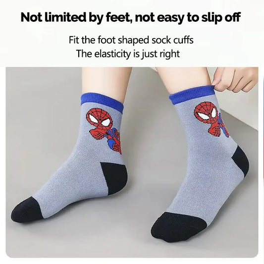 5 Pairs Spiderman Children's Socks Kawaii Soft Marvel Kids Boys Socks MiddleTube Cartoon Baby Socks Christmas Gift 2-9 Years Old