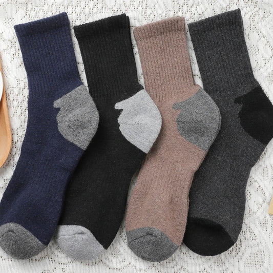 4Pairs Thick Warm Wool Mid Calf Socks Winter Men's Solid Color Cold Proof Sports Socks Men's and Women's Universal Knitted Socks