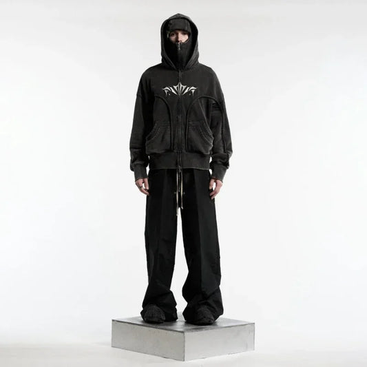 Y2K Ninja Hoodie Gothic Trendy Double Hat Design Functional Streetwear Vintage High Street Men Women Oversized Casual Pullover