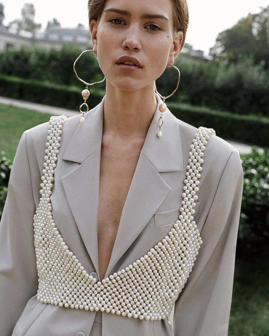 Sexy Women Pearl Crop Top Fishnet Hollow Out Camisole Beach Holiday Cover-ups Chic Women Sleeveless Summer Matching Vest Korean