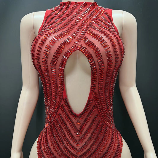 Fashion Crystal Rhinestones Short Dress Deep V Black Club Party Birthday Performance Drag Queen Costume