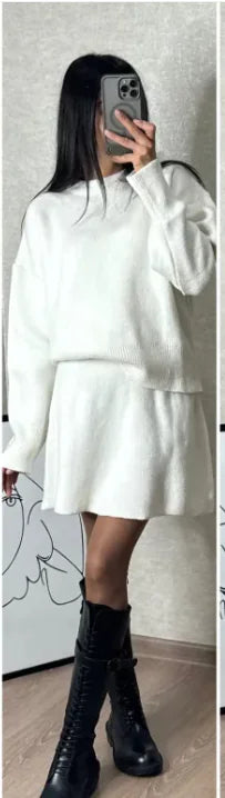 - Beinhaltet einen kuscheligen, modischen Pullover und einen dazu passenden kurzen Rock.