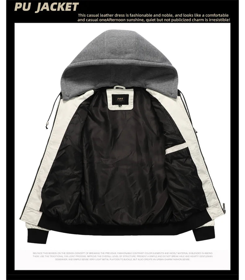 2023 herbst Winter herren Leder Jacke Hohe Qualität Korea Mode Jugend Mit Kapuze Leder Mäntel EUR Größe 3XL Blouson Homme hiver