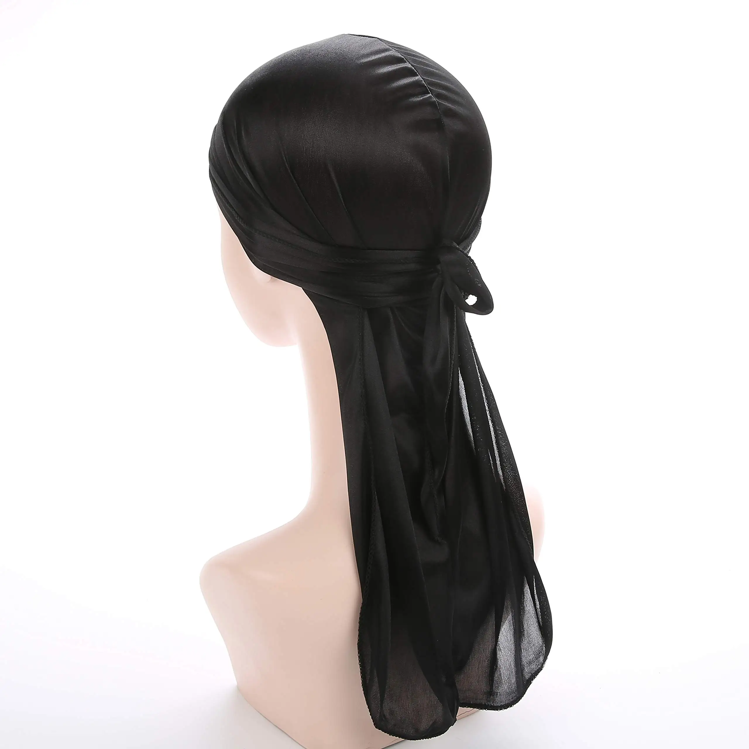 2022 Neue Satin Durag Turban Motorhaube Perücken Durag Biker Headwrap Piratenhut Kappe Für Männer Haarschmuck Lange Schwanzriemen Bandanas