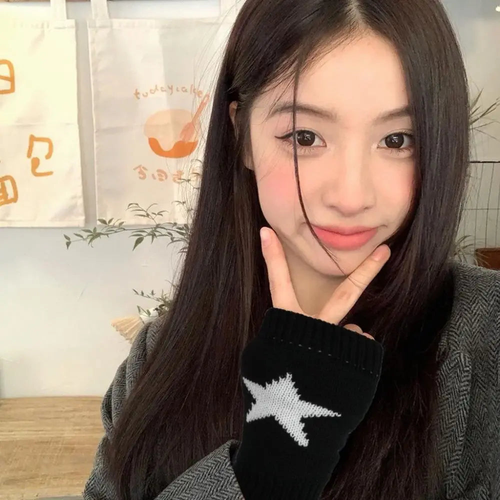 2024 Punk Y2K Gestrickte Wollhandschuhe für Männer Frauen Pentagramm Halbfinger Warme Weiche Fäustlinge Weiche Stern Hand Fingerlose Handschuhe