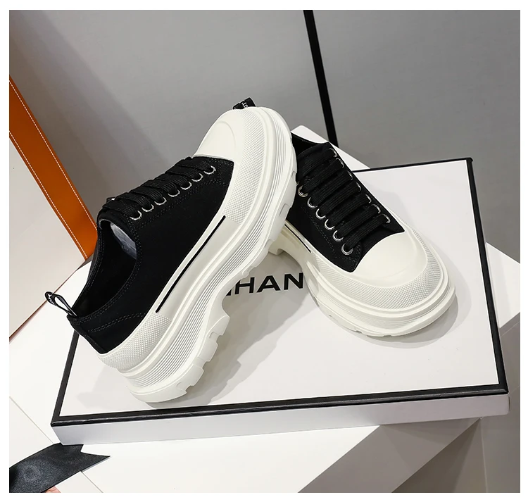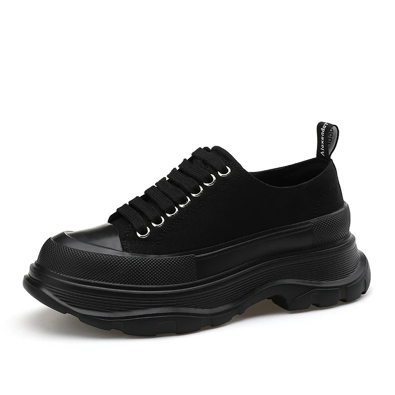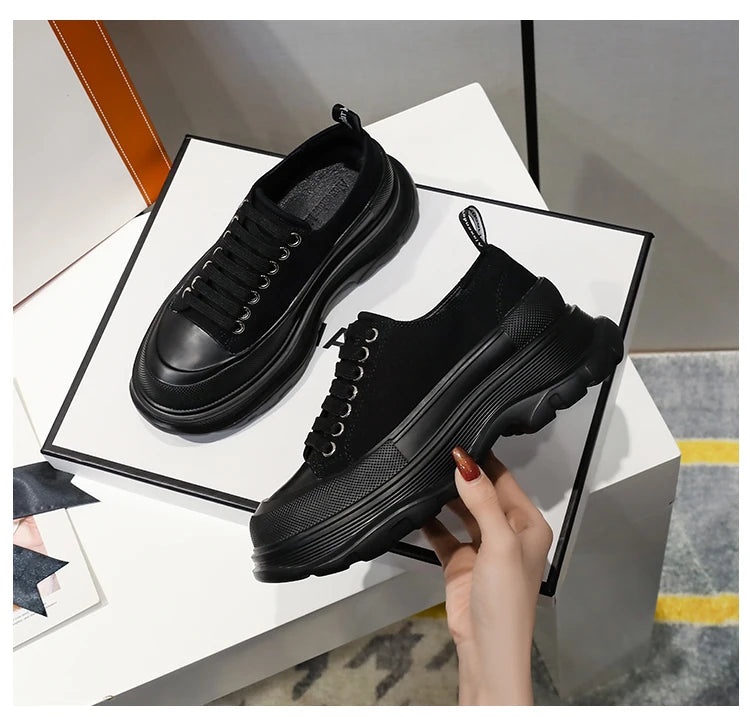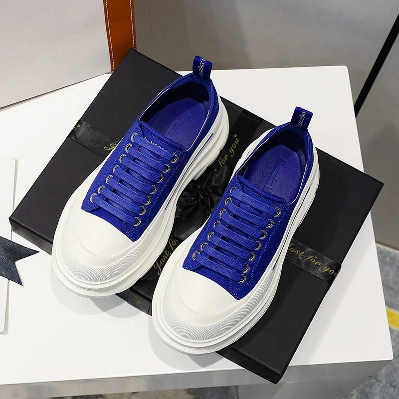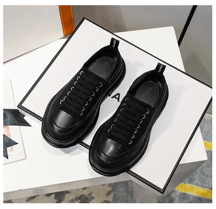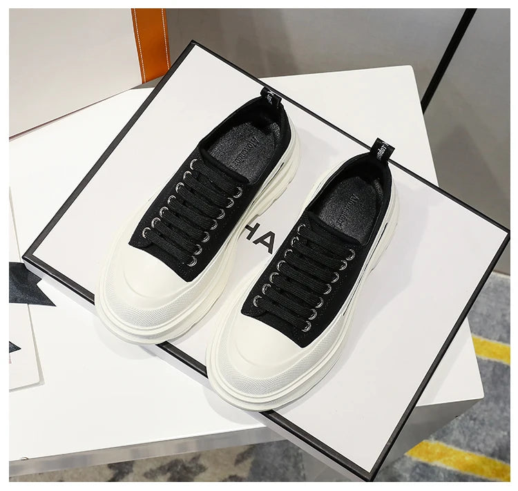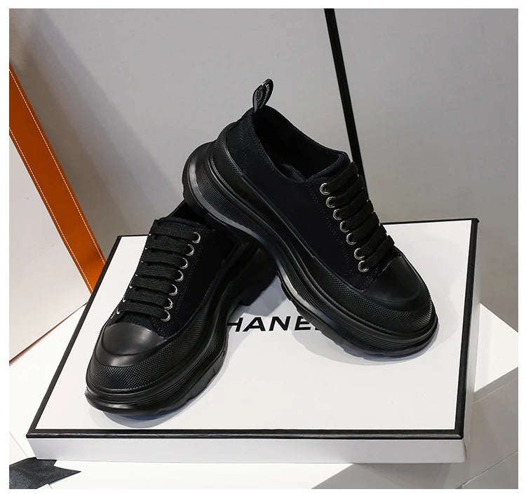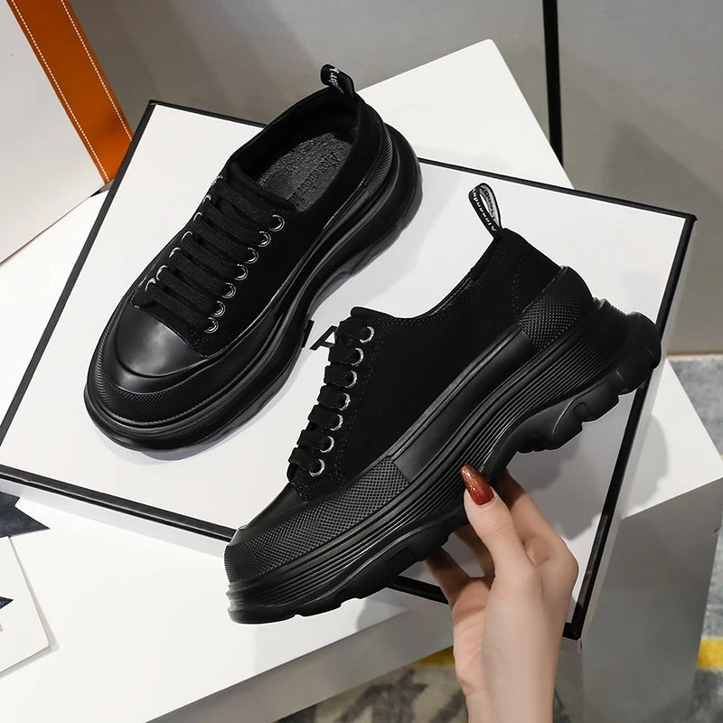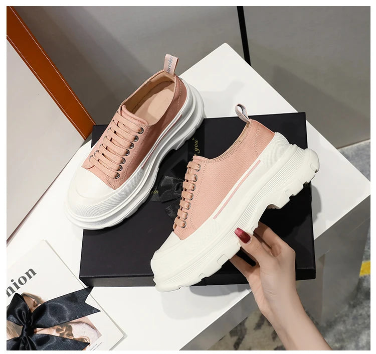2024 Frühjahr Neue Damenschuhe Schnürschuhe Sport- und Freizeitschuhe für Herren Dicke Sohle Wasserdichte Plattform Weiche Erhöhte Leinwand Flache