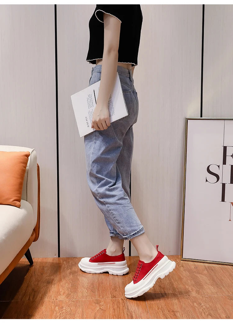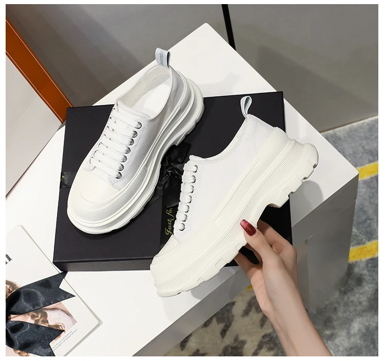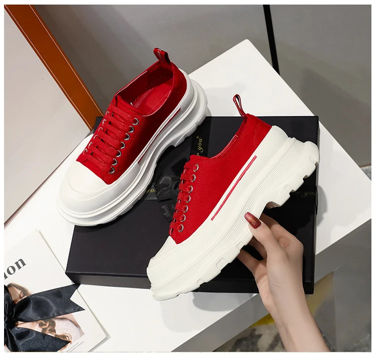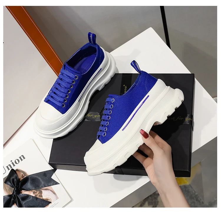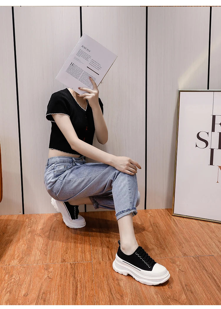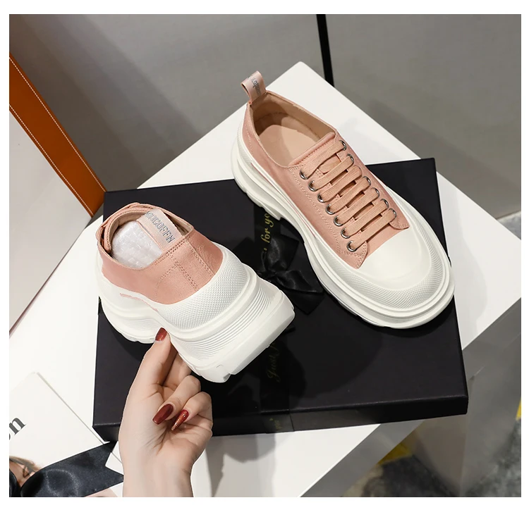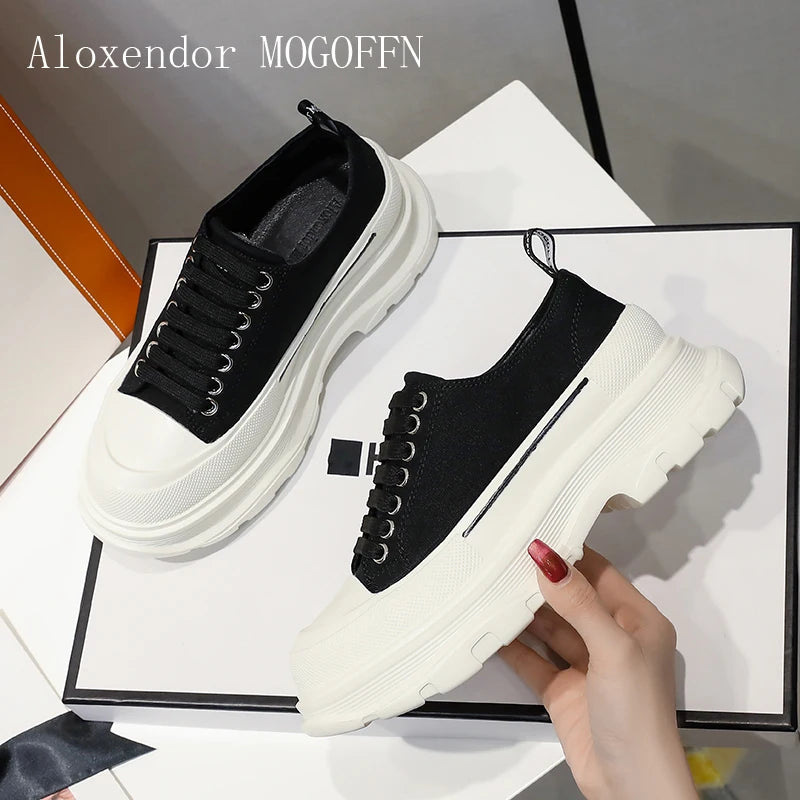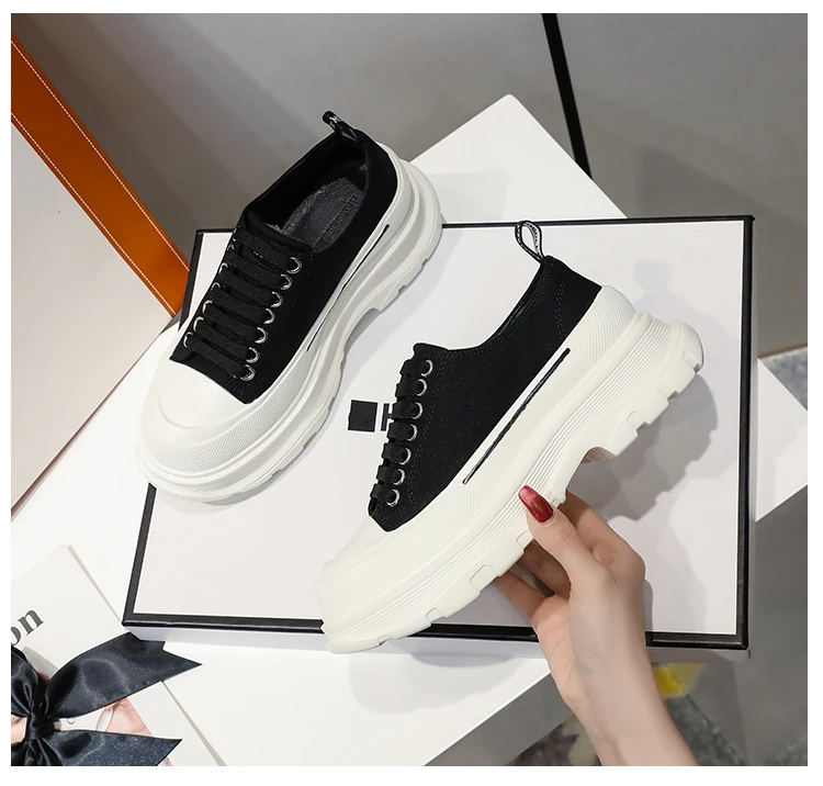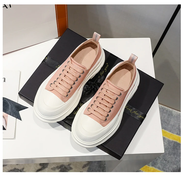2024 Frühjahr Neue Damenschuhe Schnürschuhe Sport- und Freizeitschuhe für Herren Dicke Sohle Wasserdichte Plattform Weiche Erhöhte Leinwand Flache