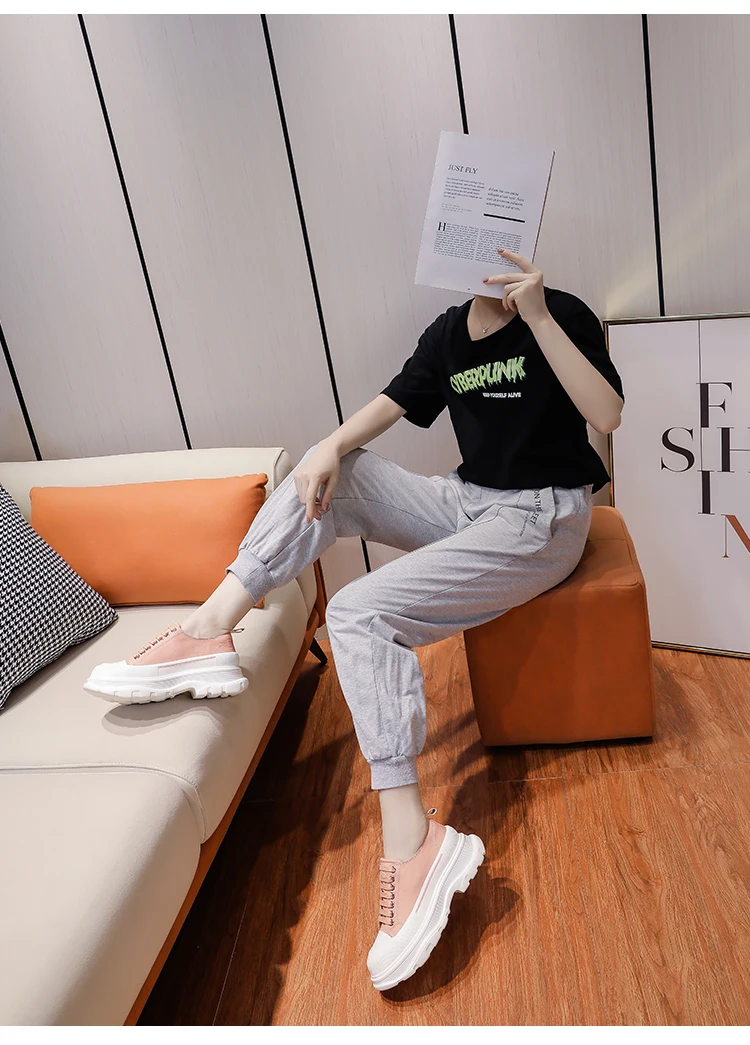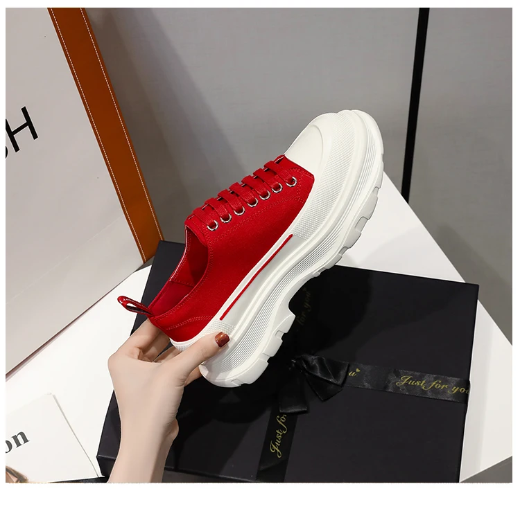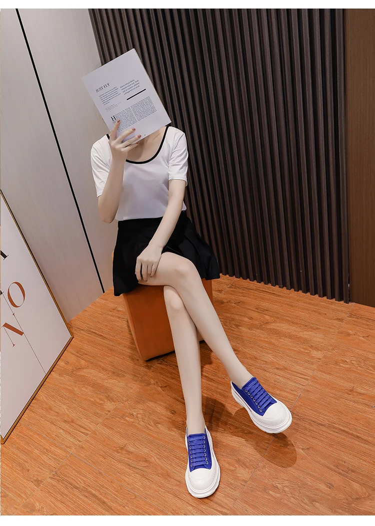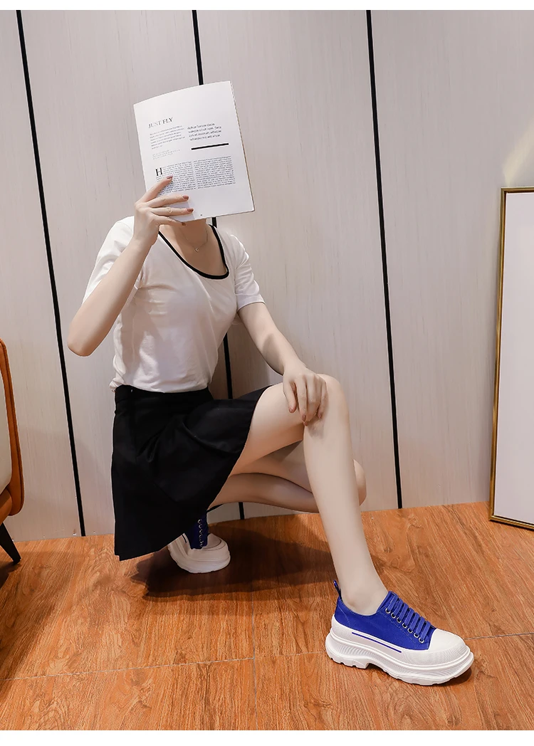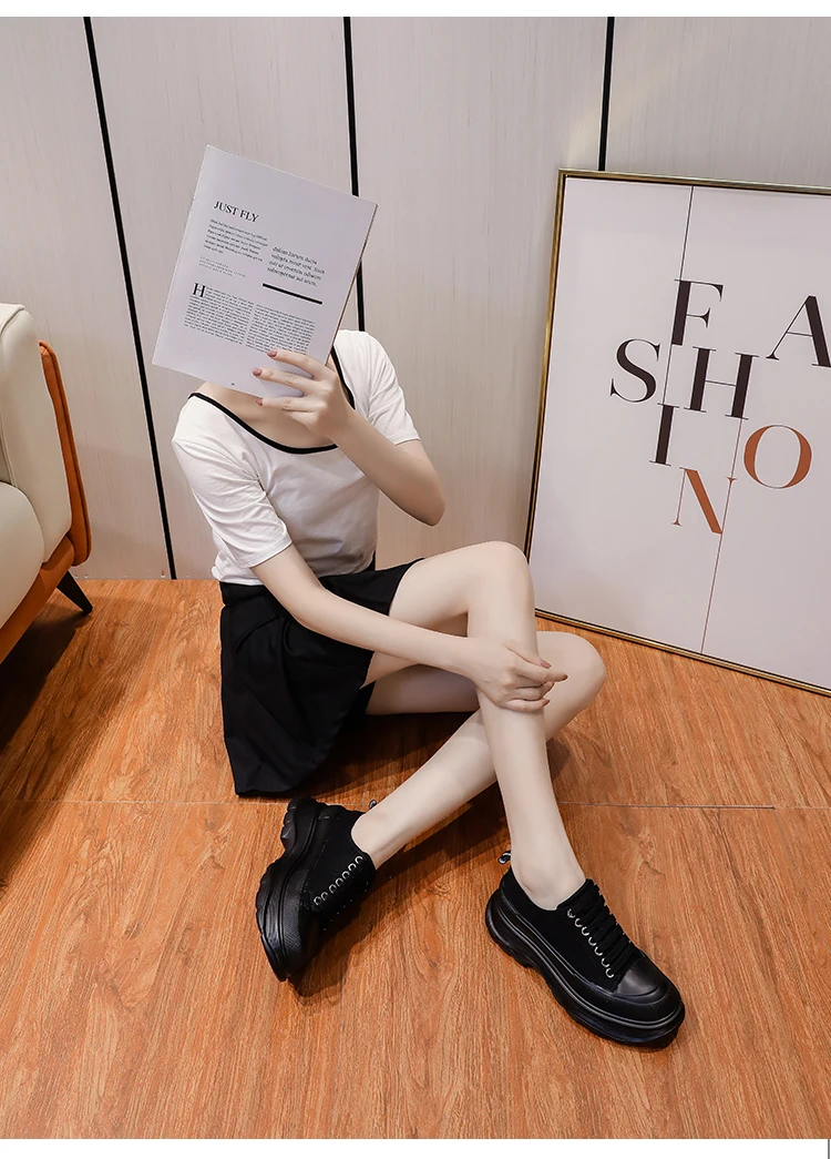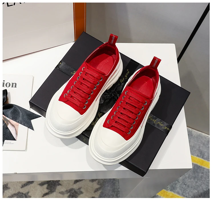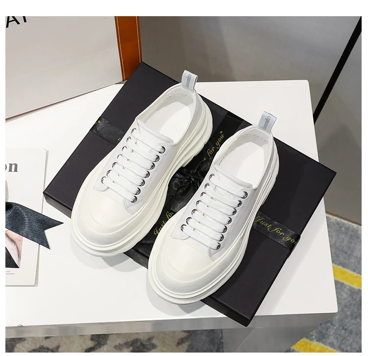 2024 Frühjahr Neue Damenschuhe Schnürschuhe Sport- und Freizeitschuhe für Herren Dicke Sohle Wasserdichte Plattform Weiche Erhöhte Leinwand Flache