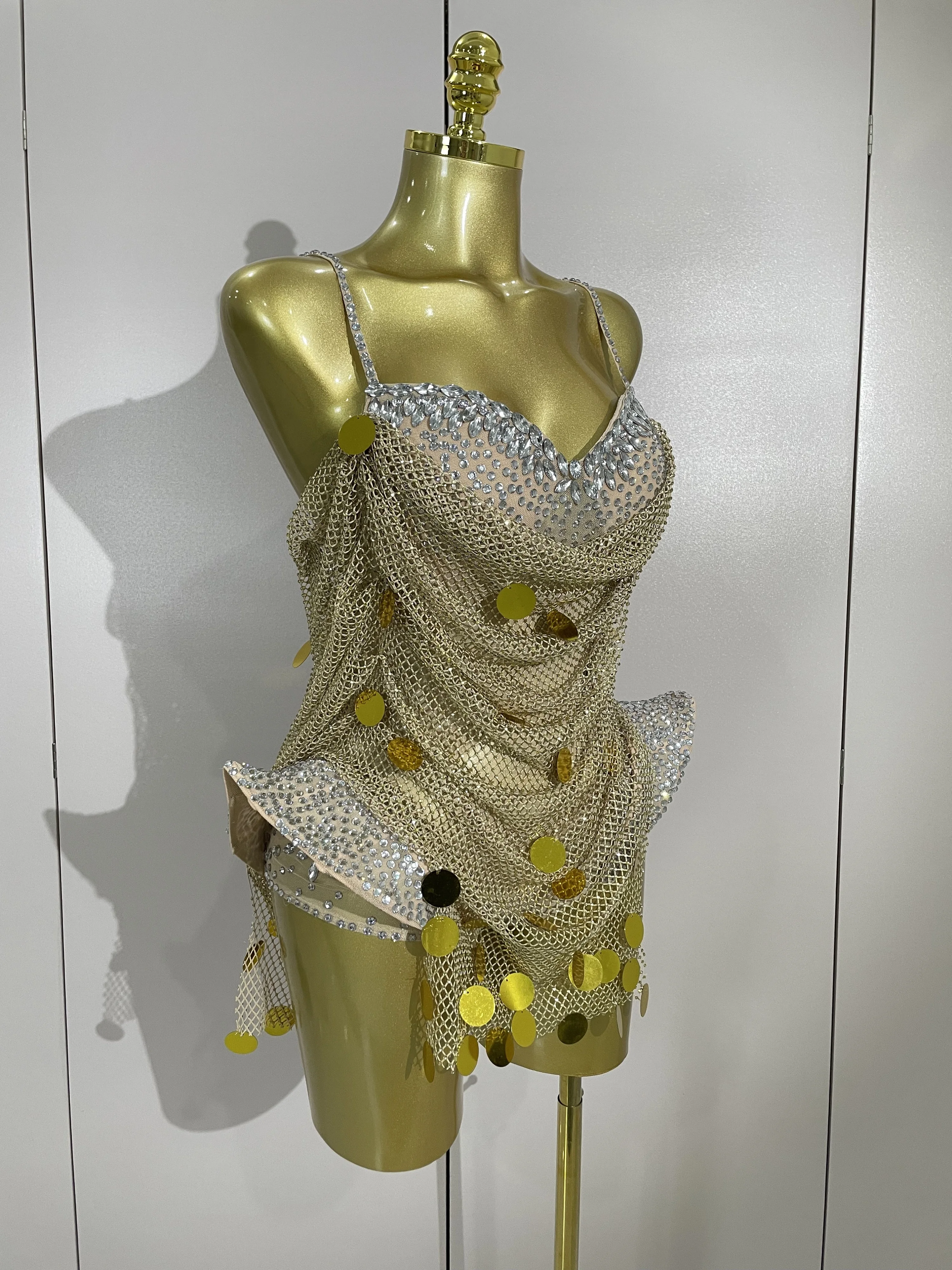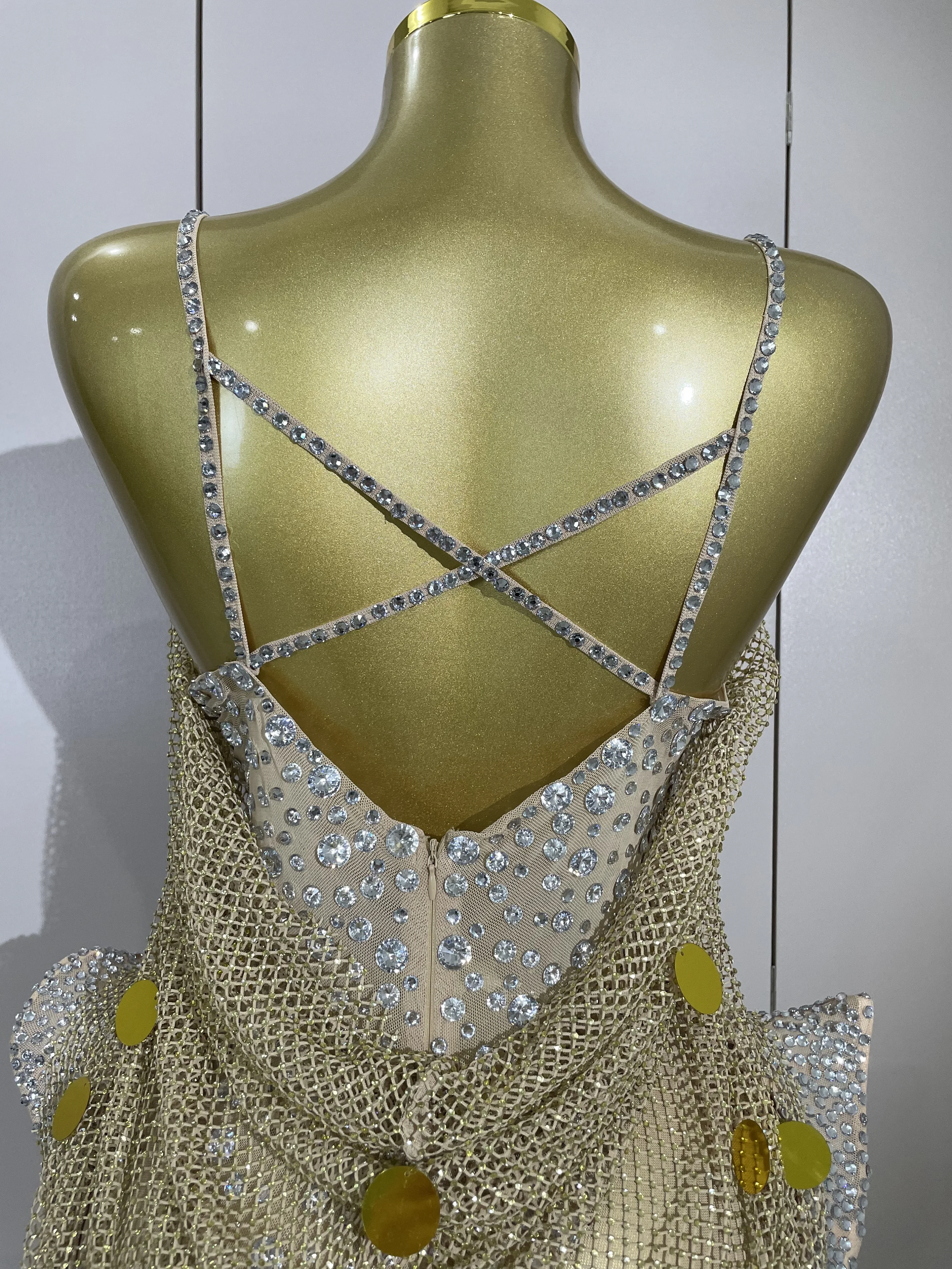 New Luxury Sparkly Diamond Sexy Mesh Bodysuit Women Evening Prom Birthday Party Gown Nightclub DJ Performance Stage Wear