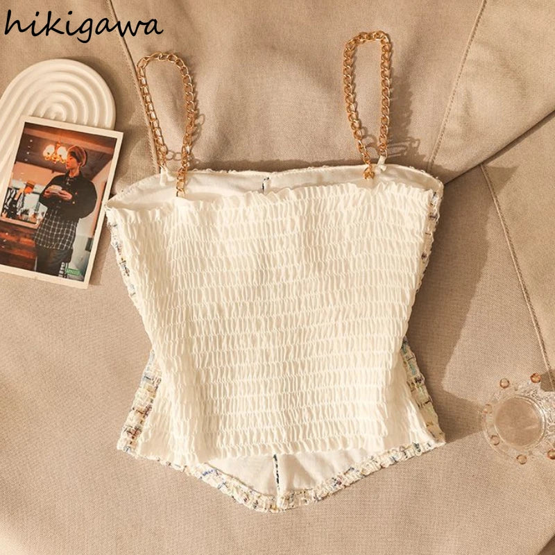 Ropa Mujer Summer Tanks for Women's Sweet Plaid Tunic Sleeveless Camis Crop Tops Chic Chian Backless Single Breasted Vest