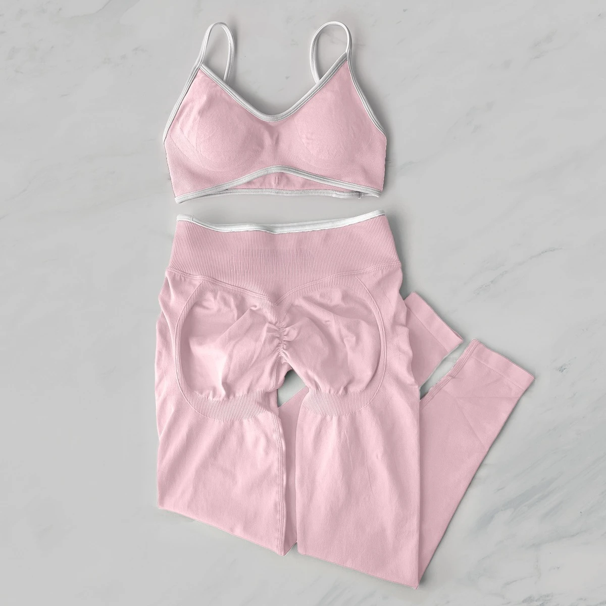2Pcs Women's Gym Yoga Set Seamless High Waist Leggings Sports Bra Top Workout Outfit Fitness Activewear Running Training Clothes