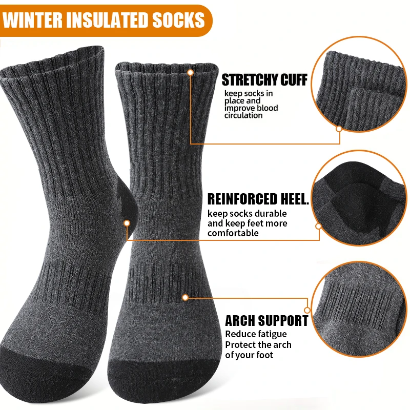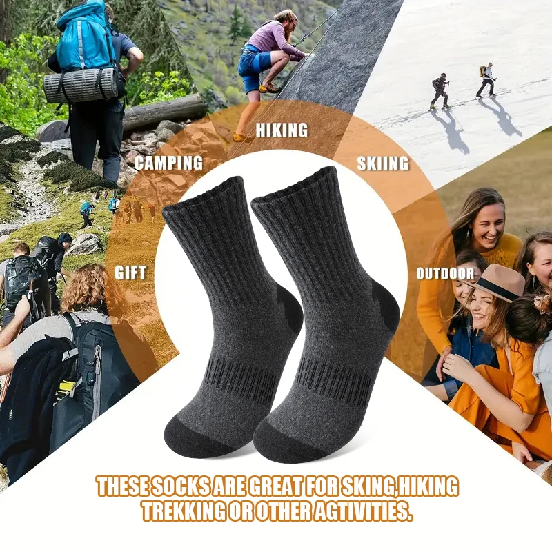 4Pairs Thick Warm Wool Mid Calf Socks Winter Men's Solid Color Cold Proof Sports Socks Men's and Women's Universal Knitted Socks