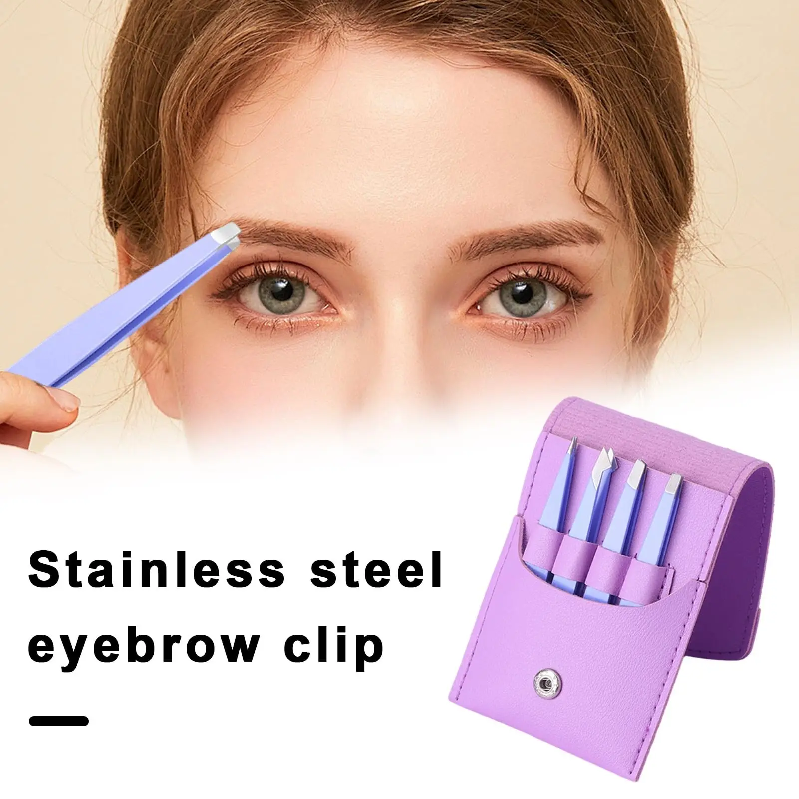 4Piece Tweezers for Women, Tweezer Set for Facial Hair Eyebrow Tweezers Men Eyebrow Chin Twizzers Kit Hair Grooming with Leather