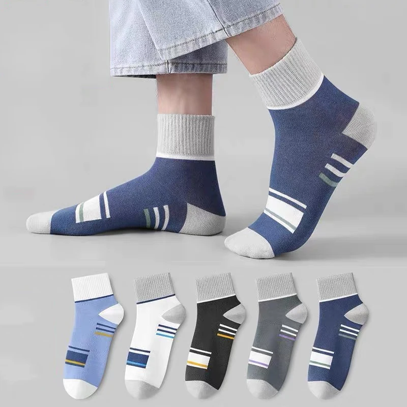 LKWDer Brand 5 Pairs Men's Cotton Socks Sweat-absorbing Breathable Anti-odor