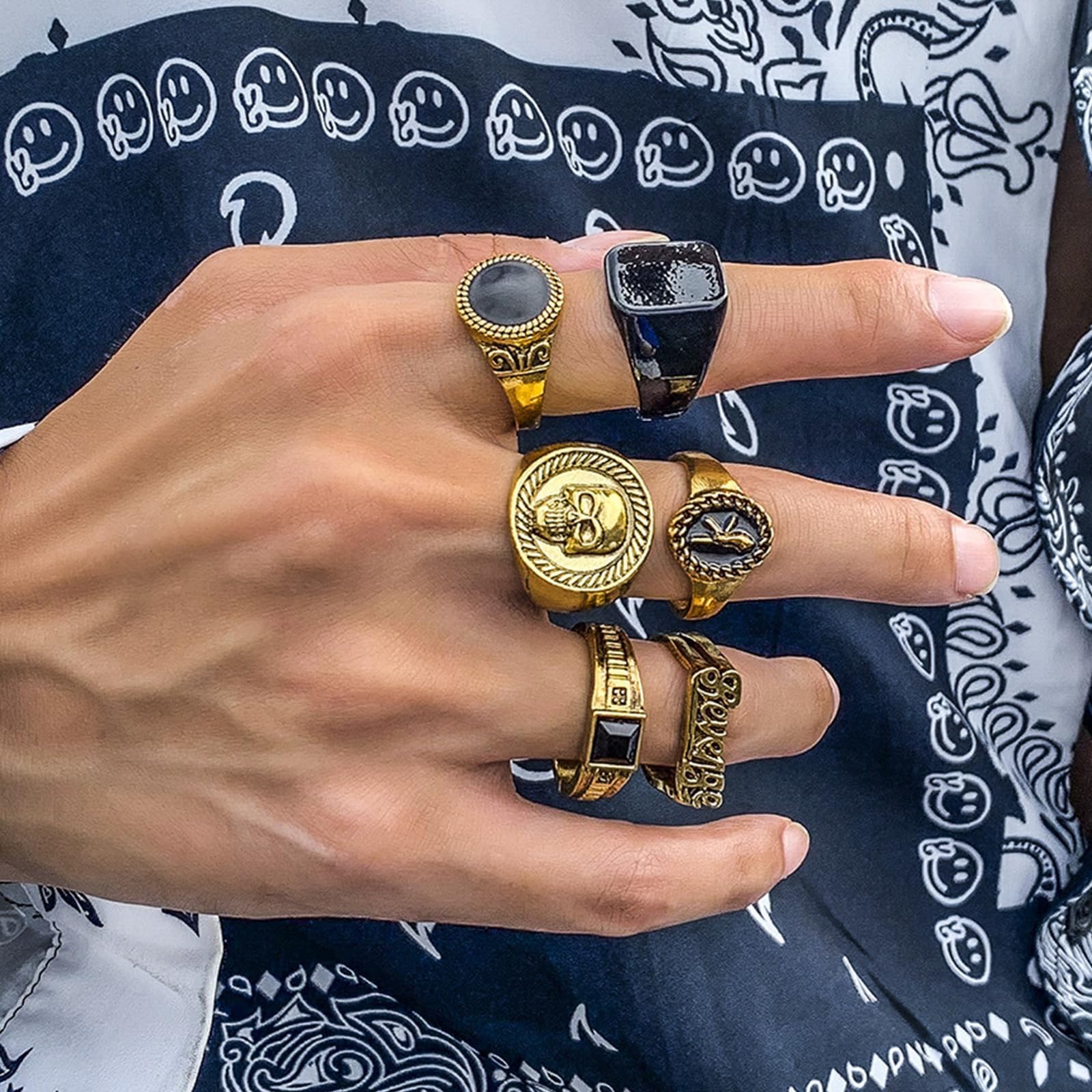 - 【Produkt beinhaltet】: Das Produkt ist ein goldenes Ringset in Einheitsgröße, das insgesamt 6 verschiedene Stile von Ringen in Einheitsgröße umfasst. Das Tragen ist für die meisten Männer geeignet und ein ideales Handaccessoire, das ihr einzigartiges Temperament unterstreicht.
