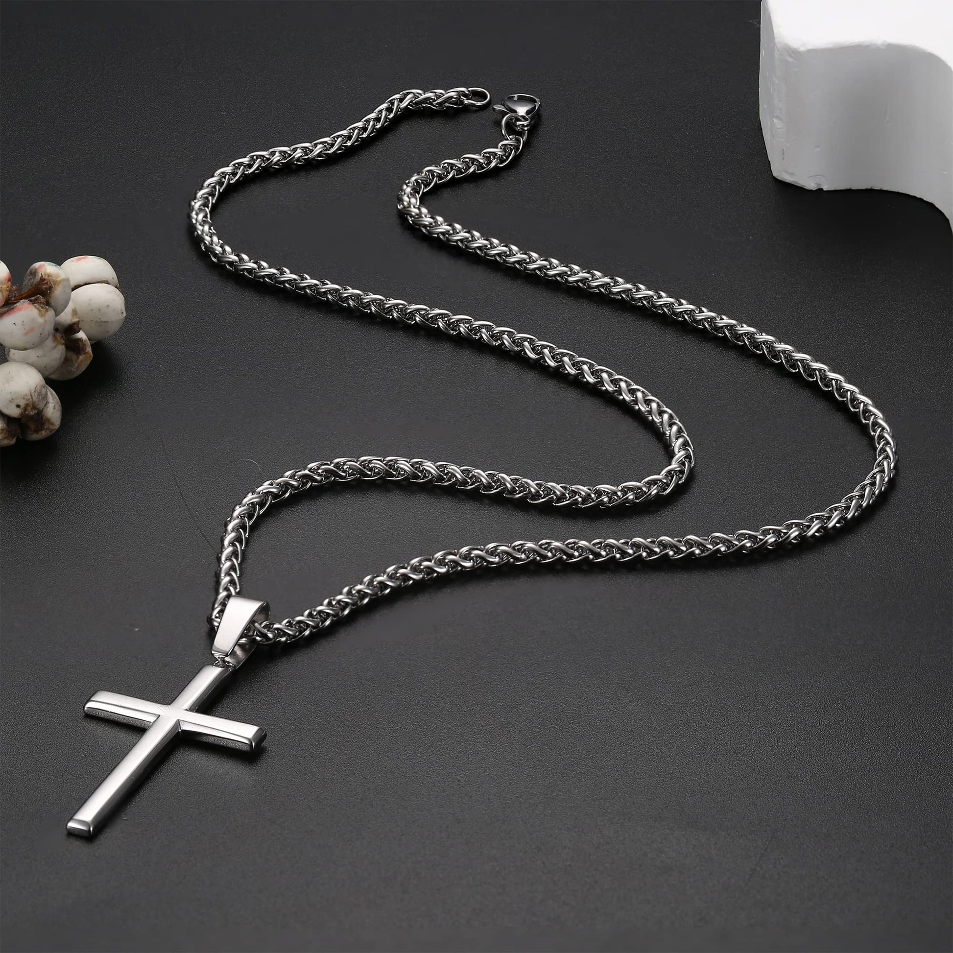 - 【Größe】Kreuzanhänger aus Sterlingsilber: Länge 2 Zoll (35 mm), Breite 1,14 Zoll (23 mm). Weizenkettenhalskette Breite 3 mm, Länge: 16/18/20/22/24/28/30 Zoll, es stehen 7 Längen von Halsketten zur Auswahl. Sie können verschiedene Längen wählen, indem Sie sich auf die Bilder beziehen, um verschiedene Effekte zu erzielen.
