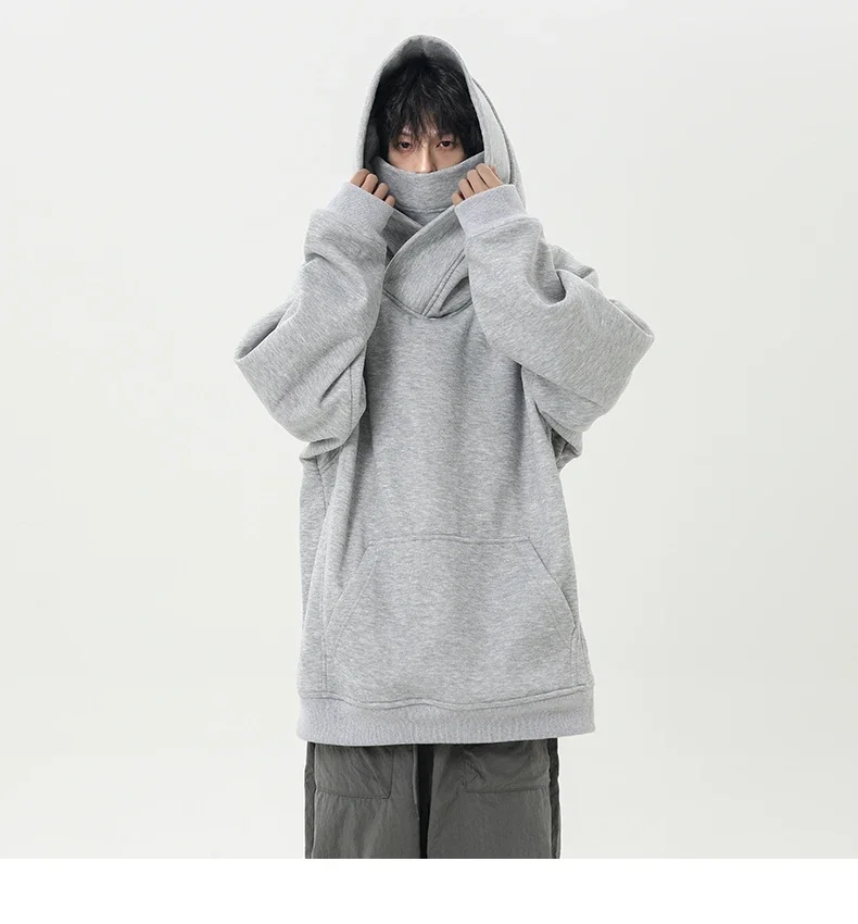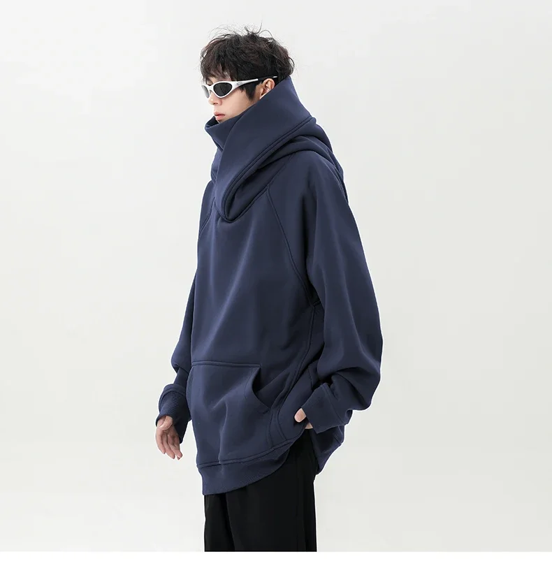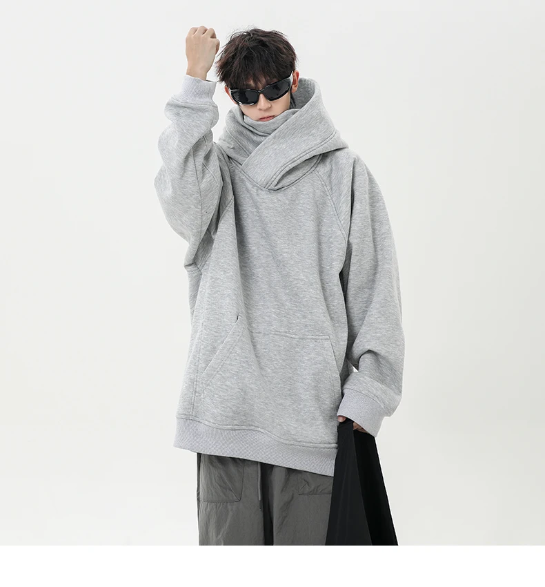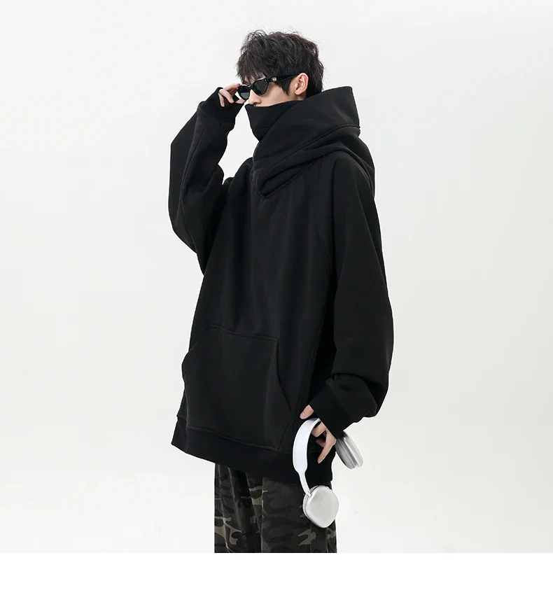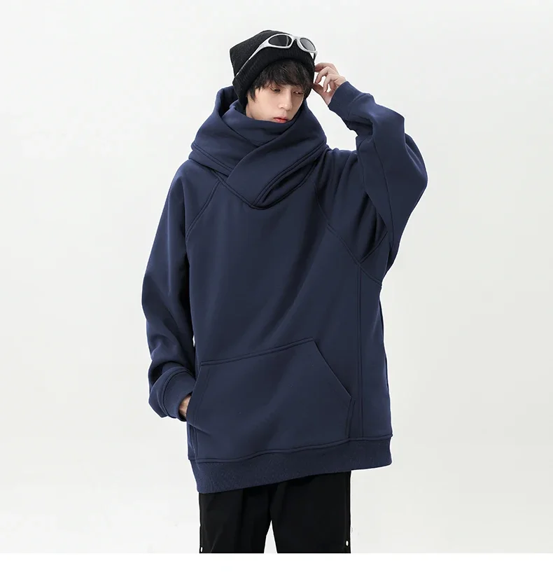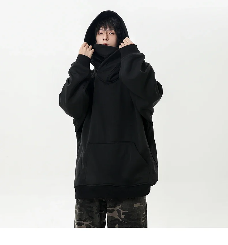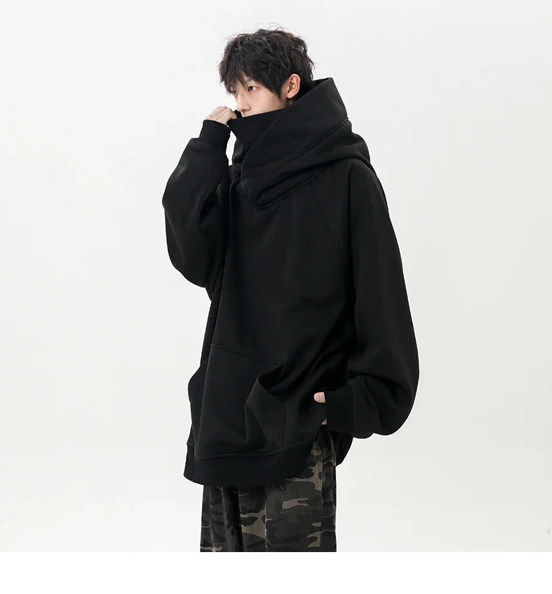 Autumn New High Neck Sweatshirt Men Pile Up Collar Hoodie Harajuku College Style Ninja Sweatshirt Casual Sports Loose Couple Top