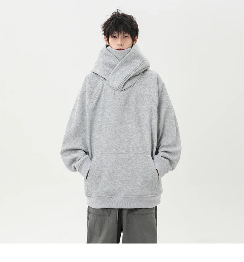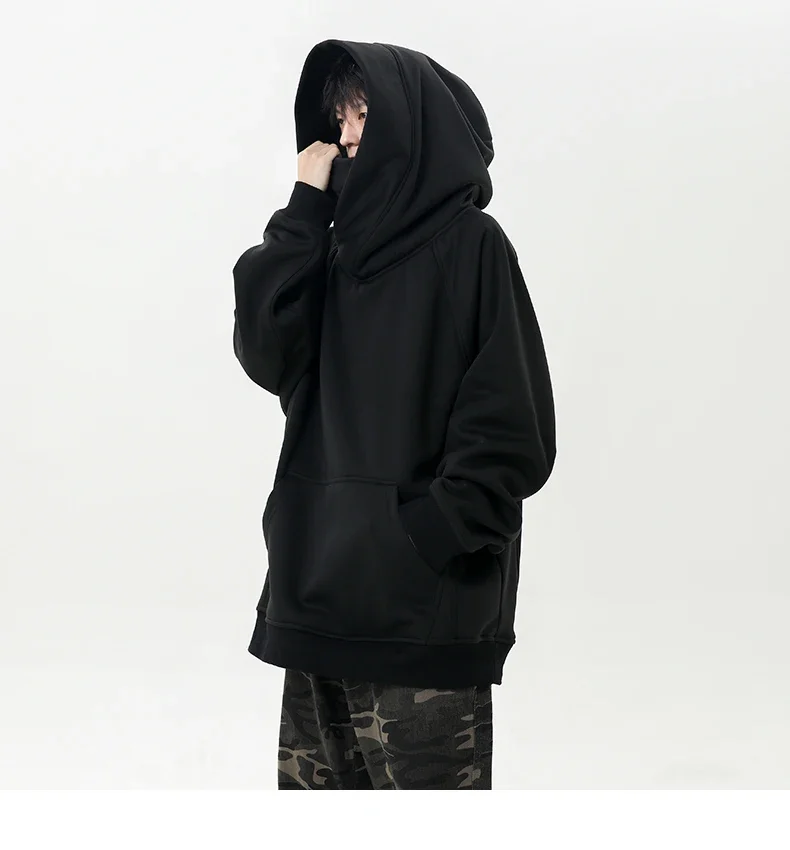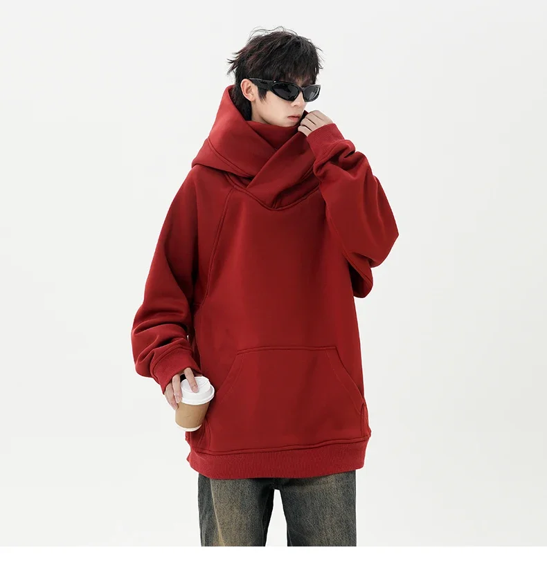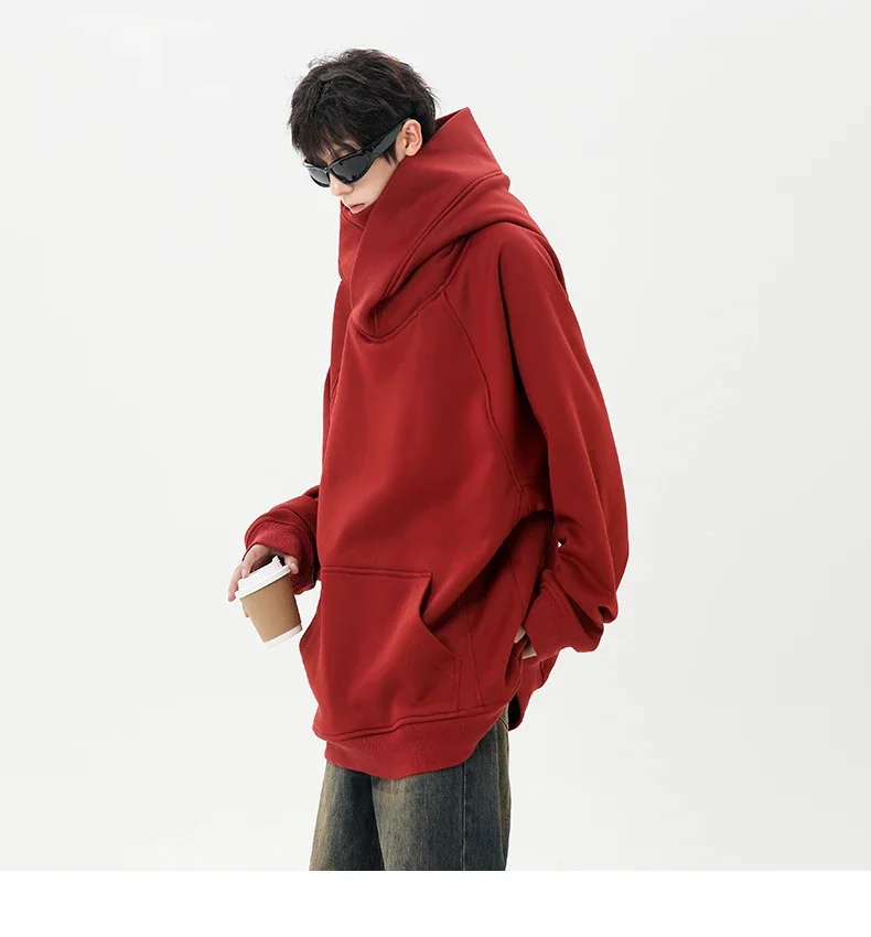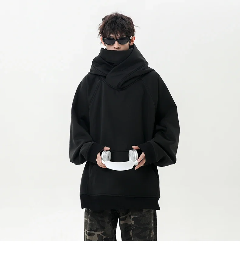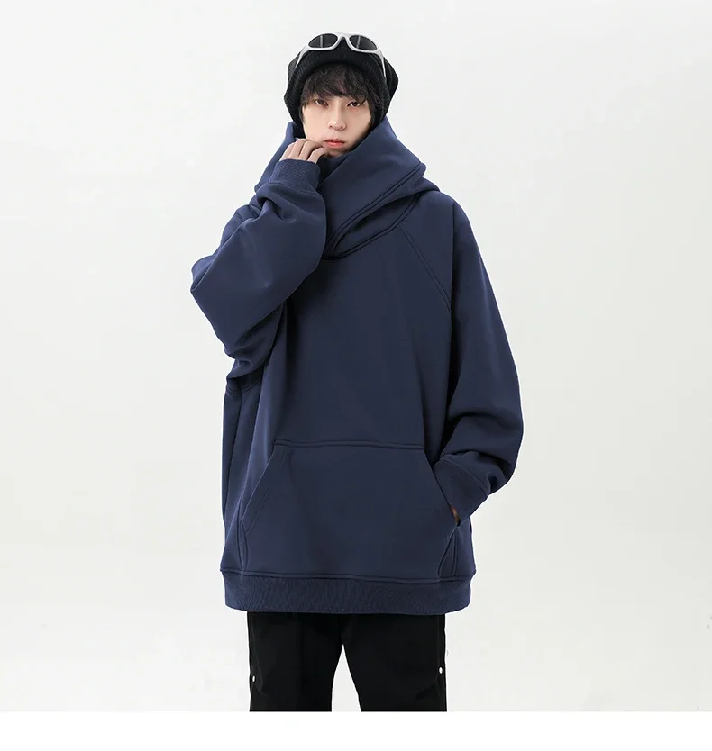 Autumn New High Neck Sweatshirt Men Pile Up Collar Hoodie Harajuku College Style Ninja Sweatshirt Casual Sports Loose Couple Top