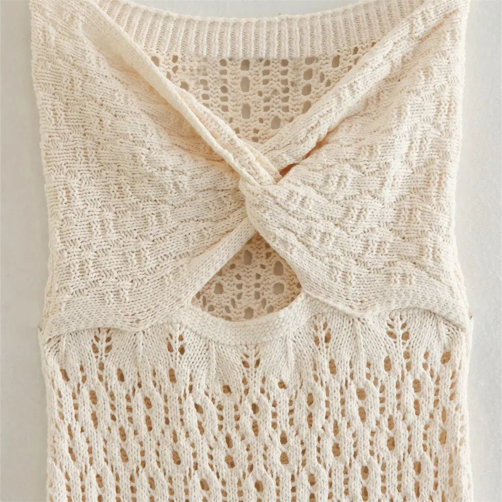 BWQ Autumn New Women's Fashion Temperament Bra Opening Design Jacquard Hollow Mesh Knit Dress