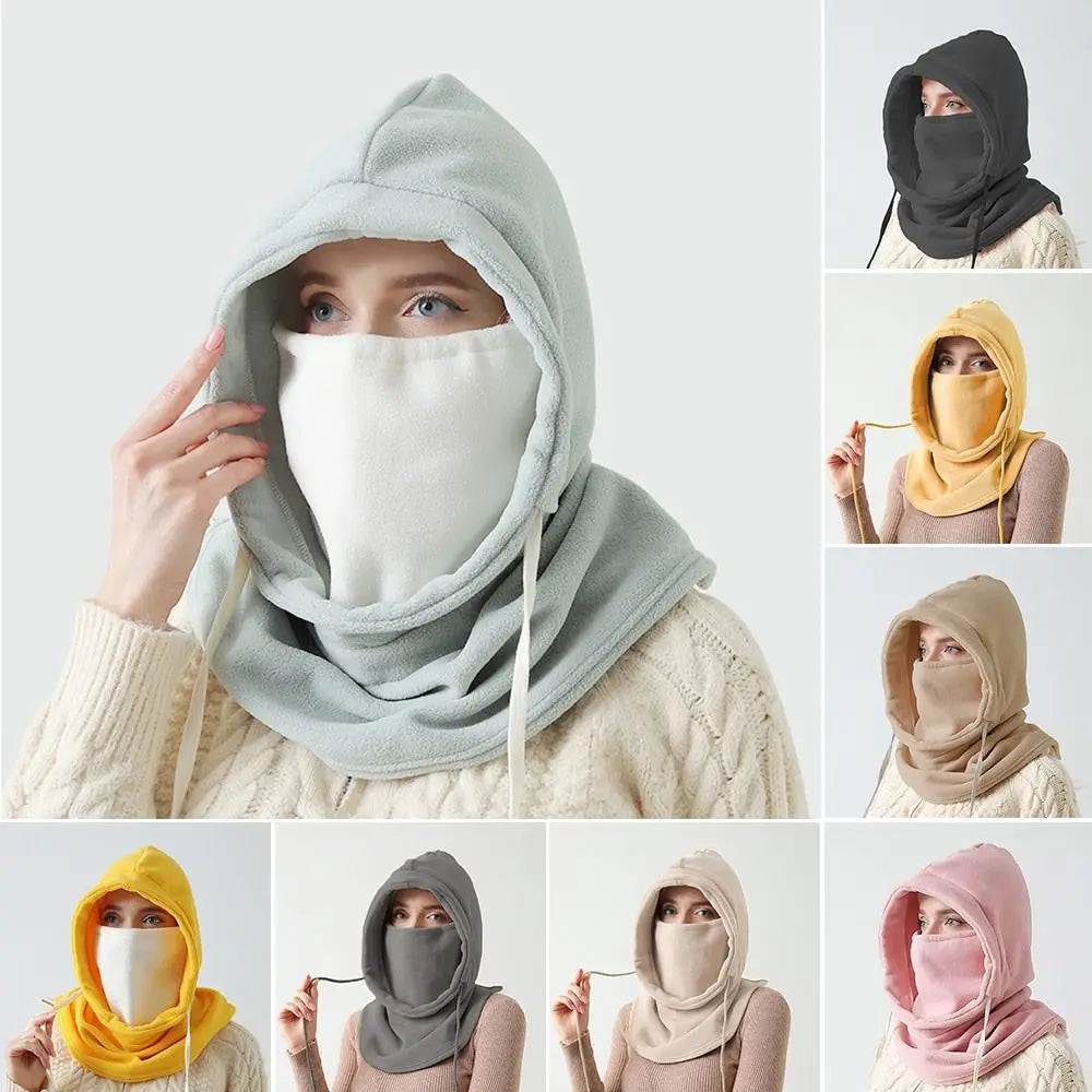 Lässige Plüschmützen Kappe Halswärmer Winddichte Mütze Schal Set Verdickt Halten Sie warm Mit Kapuze Gesichtsmaske Outdoor