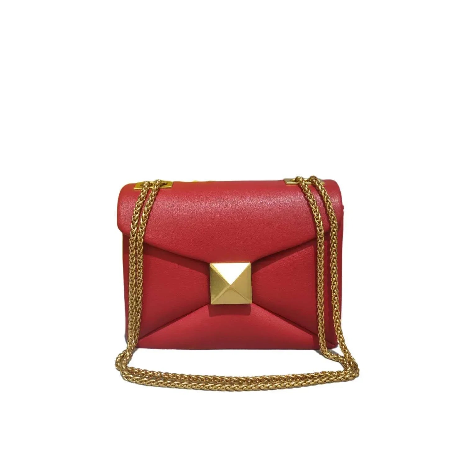 Cowhide Luxury Designer Leather Handbag Golden Big Rivet Chain Shoulder Small Purse Fashion Green Tote Bag Crossbody Women
