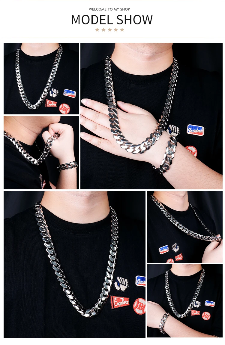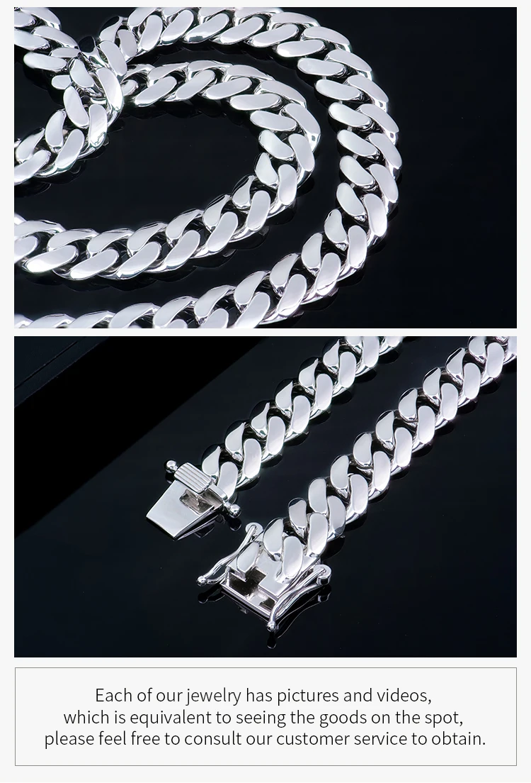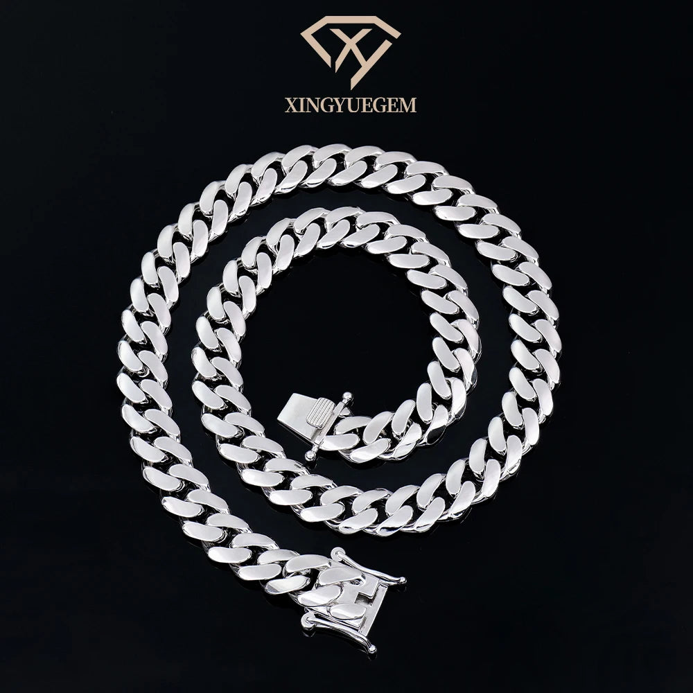 Heavy Metal Style 925 Sterling Silver Hiphop Jewelry Rhodium Plated 18mm Plain Cuban Link Chain Necklace for Rapper