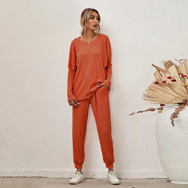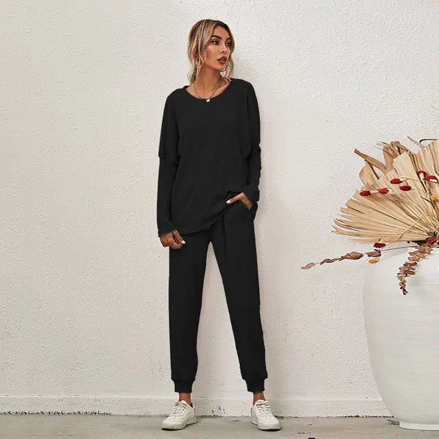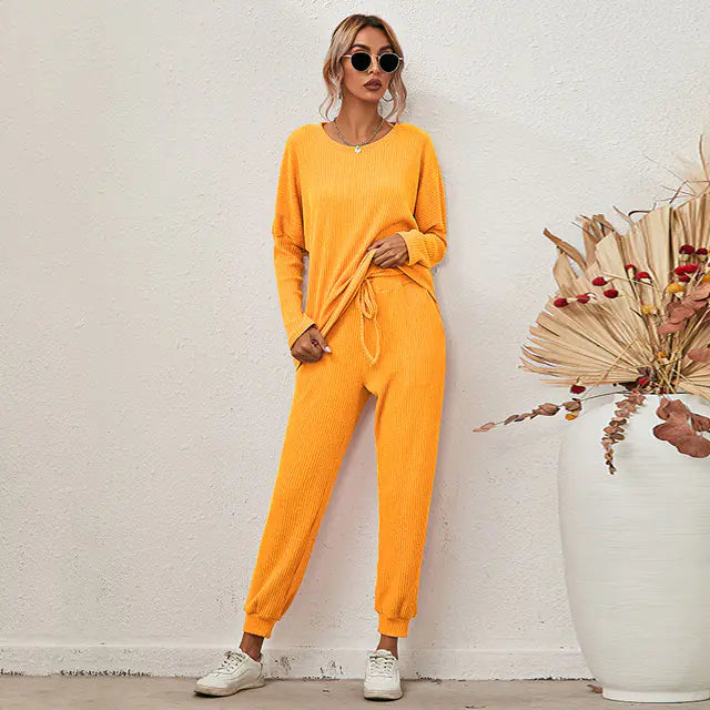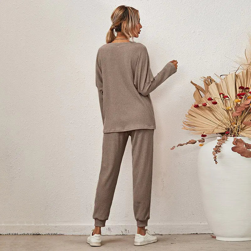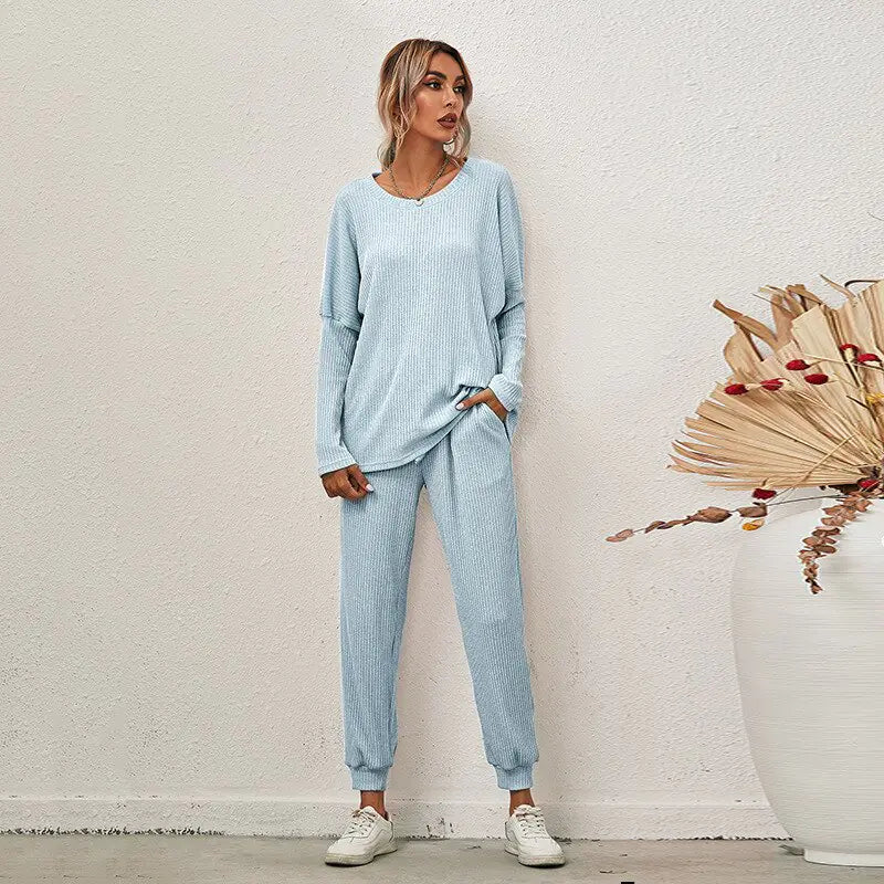 Erleben Sie die perfekte Mischung aus Komfort und Stil mit unserem Fashion Casual Solid Sleepwear Set, Ihrem Ensemble für gemütliche Nächte zu Hause. Dieses zweiteilige Set aus luxuriösem Fadenwirkstoff besteht aus einem kuscheligen Pulloveroberteil und einer langen Hose und sorgt dafür, dass Sie es beim Entspannen zu Hause warm und schick haben.
