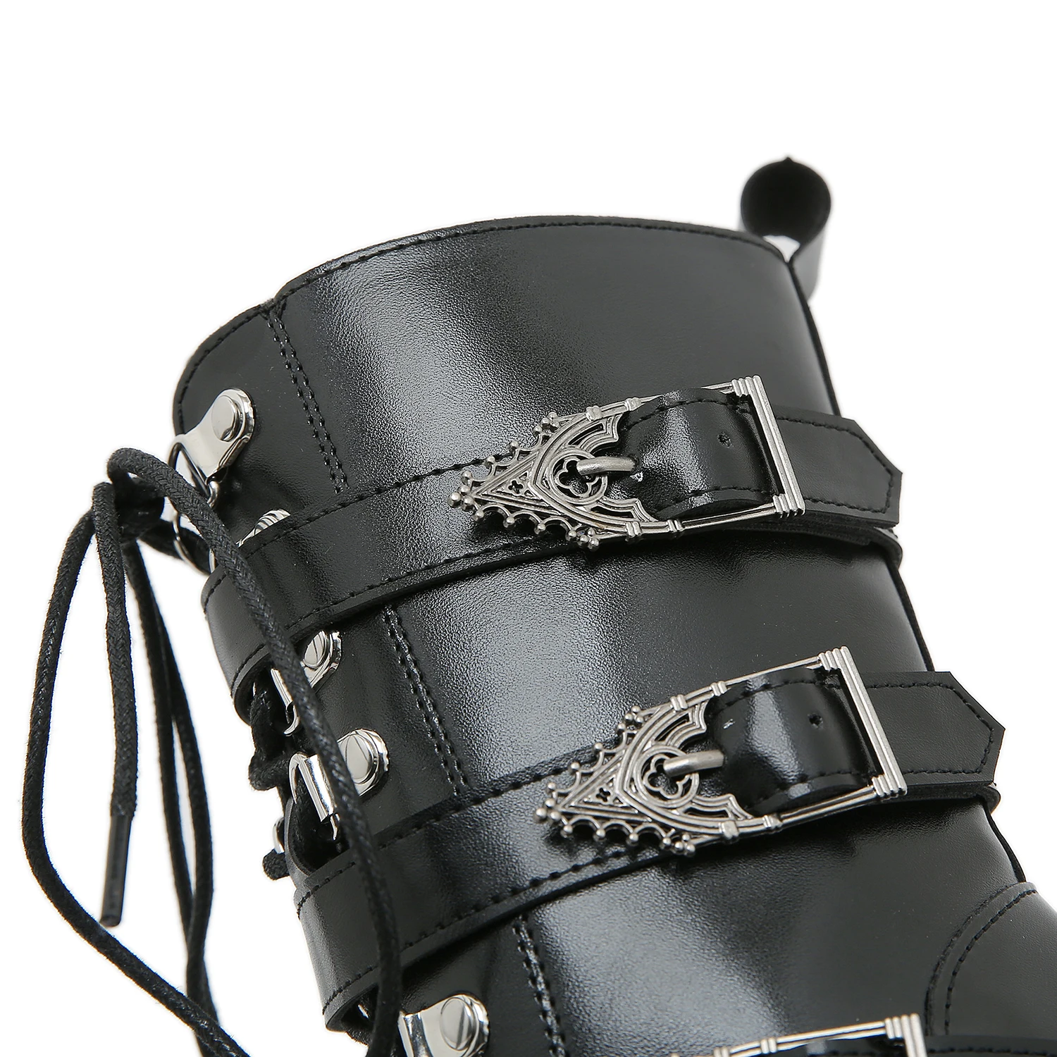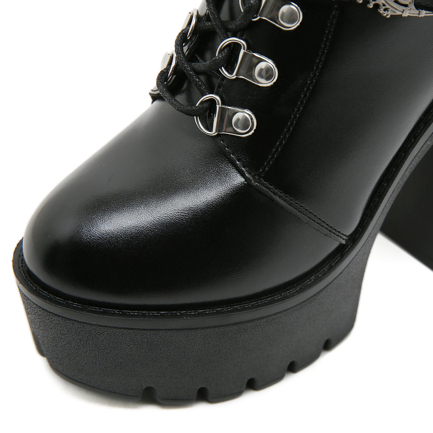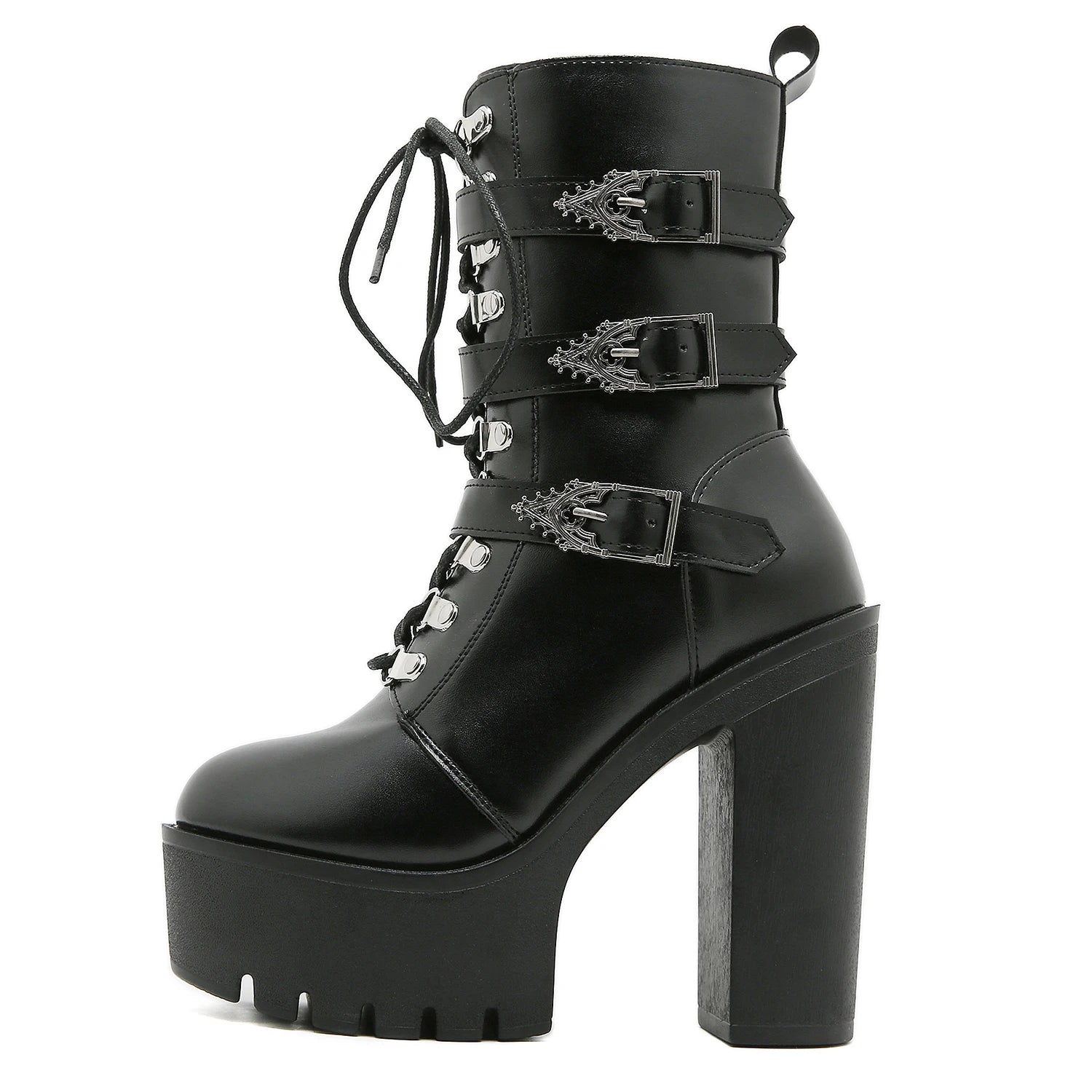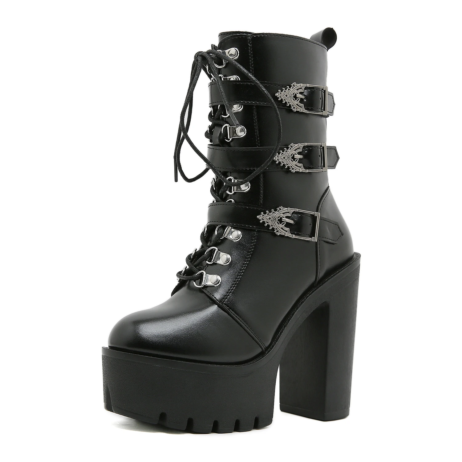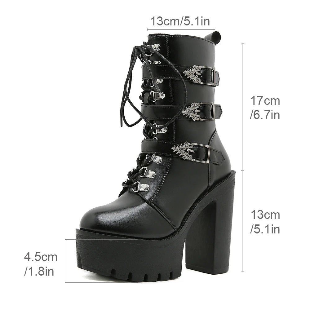Gdgydh Punk Goth Women Motorcycle Boots Block High Heels Platform Shoes Woman Fashion Buckle Design Cool Street Winter Boots