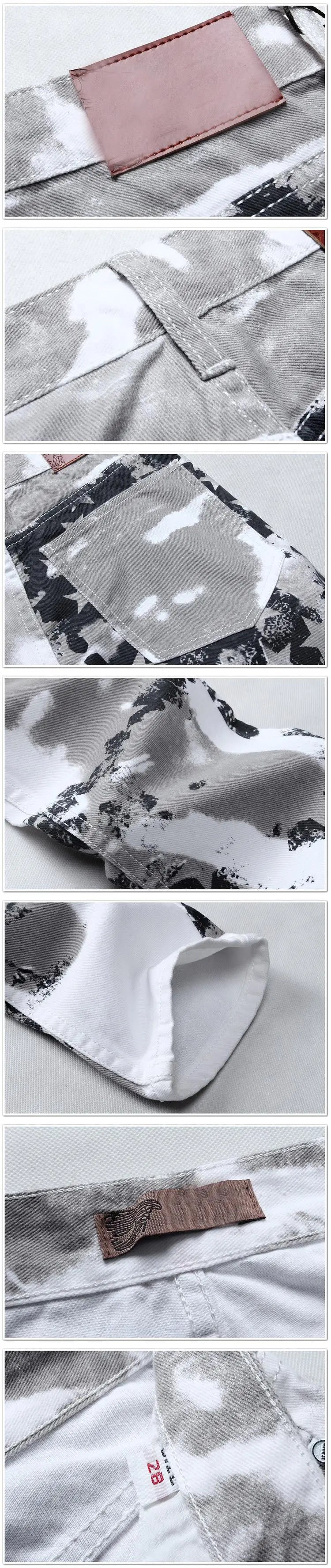 High Street Straight-Jeans für Herren, Jeans mit weißem Flaggen-Print, Stretch, schmale, lässige Hose mit fünfzackigem Stern, Hip-Hop-Hose in großen Größen